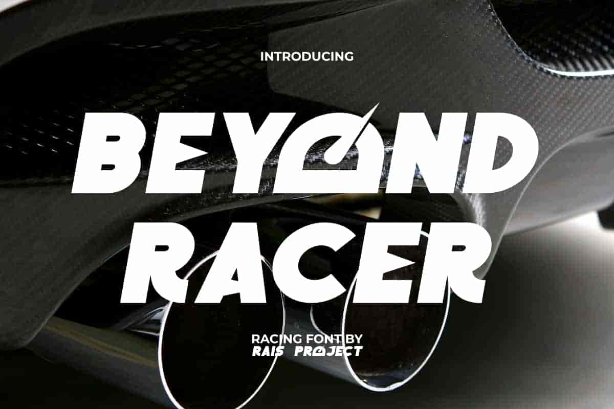 Beyond Racer Font a stylish display racing font, created by RaisProject.This display font has bold letters with added icons to make it unique at the same time.It will be good for any designs, such as advertisement, brand image, custom design, invitation, label, marketing material, poster, product packaging, quotes, signage, stationery, website page, and more! You can see the demo font below, input any word you want so you can see what it looks like: