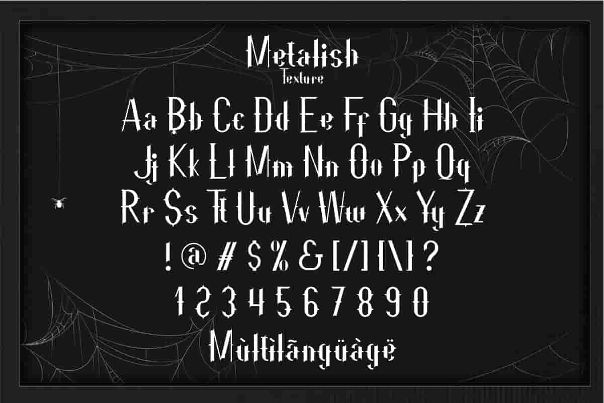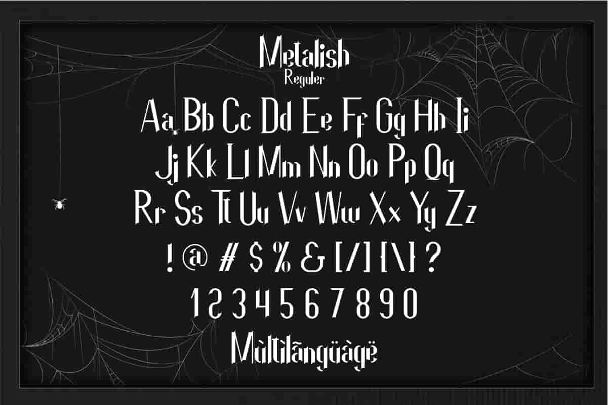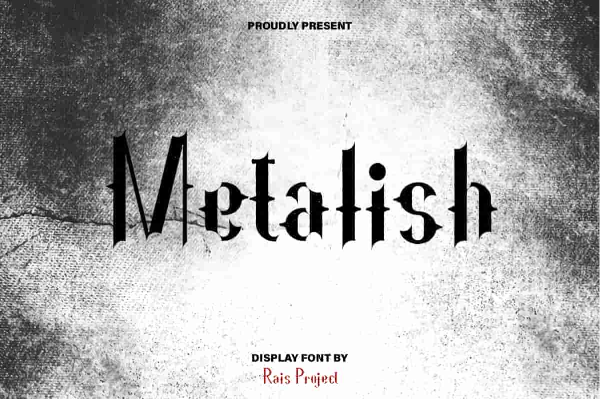 Metalish Font is a display Sans Serif horror font family, designed by RaisProject. It is our new font on the market. It has unique, exclusive and special style. You can see the demo font below. You can also input any word you want so you can see what it will look like :