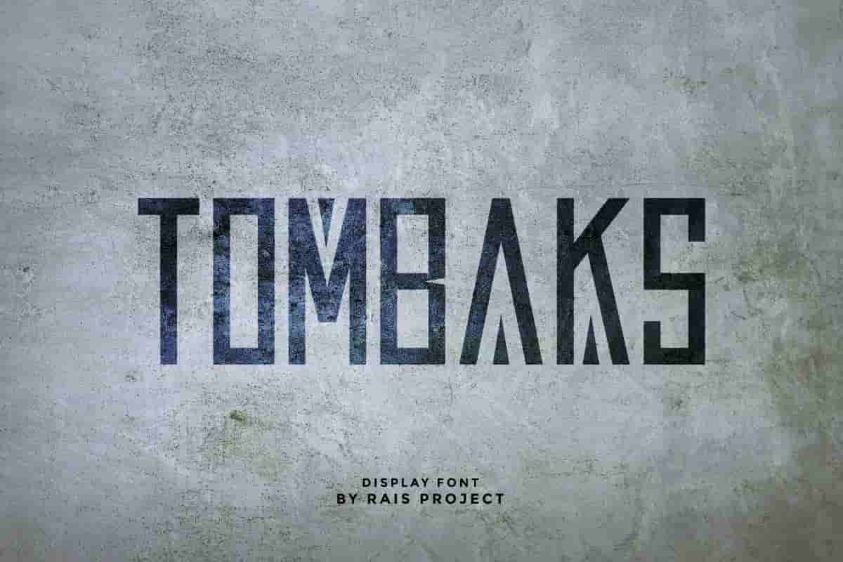 Tombaks Font a display Sans Serif font family designed by RaisProject, inspired from ancient war weapon. You can see the demo font below. You can also input any word you want so you can see what it will look like :